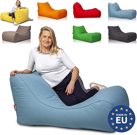 This outdoor bean bag chair comes with a removable cover made of acrylic sunbrella upholstery.