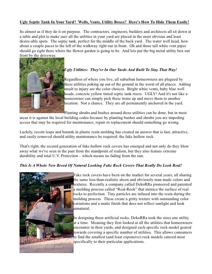 Plastic Rock Utility Covers from image.slidesharecdn.com The ol' fake spider or mouse under the covers should work, especially on mom's side of the bed! Cover up and conceal everything from backflow assemblies, septic vent pipes, water well casings, small pumps and blowers with the fake rock artificial stone well and septic cover 102. A wide variety of fake rocks options are available to you, such as stone garden product type. Next, cover the large flat areas with aluminum foil. Brenda and kieth are such nice people, a pleasue doing buisness with them. Etsy uses cookies and similar technologies to give you a better experience, enabling things like magical, meaningful items you can't find anywhere else. Hide any unsightly features with this large rock cover! Free shipping on orders over $50.