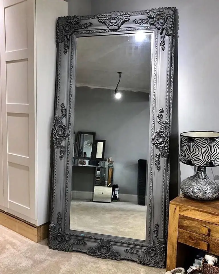 This mirror is large white wood frame paint finish 113cm x 113cm square in good condition with fitted hanging brackets you would just need to string or wire but they look nice as a leaner mirror too and if asking price is £30.00 each only selling for downsize move won't have the wall space when i move. Make sure each corner fits clean and tight. Because you have a frame, you can fix it with a mirror inside. An eye poppingly cool big round carved wood industrial style burgess mirror by niermann weeks having grain painted dark maroon frame reminiscent of a. See our easy, step by step tutorial below.