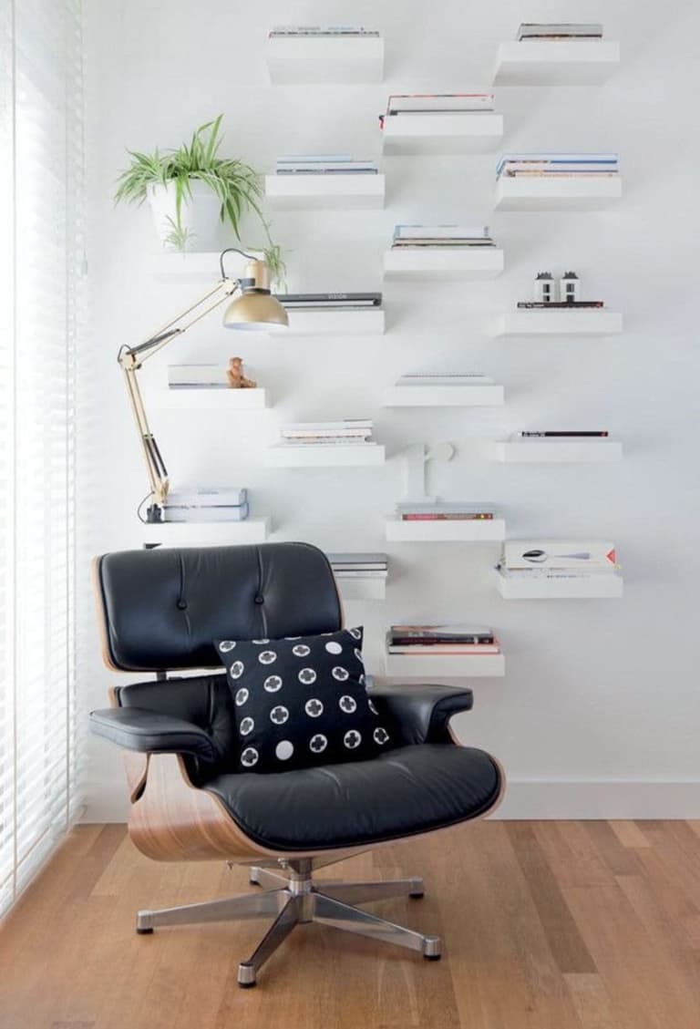 From vt wonen, a wall of little lack shelves creates an unexpected and totally modern library in the living room.