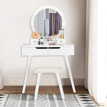 Low shipping & financing vanity mirror with lights | etsy. The first product that you get to know is this modern dressing table with mirror from fineboard. Hello guys, my name is janet and in this video i will be doing a diy for a vanity mirror with lights. Yes, a amazon prime touchscreen vanity mirror with bluetooth speakers! Vanity table set with 3 color lighted mirror & stool. Instead, invest in a makeup mirror with lights for your vanity, desk, or to bring with you on the go to make the process so much easier. This vanity table setcan go with any decoration or furniture in your room, and perfect sizemakes it very suitable for limited space. Lighted mirror vanity set trikosalt vip. Vasagle vanity table set with 10 light bulbs and touch switch, dressing makeup table desk with large round mirror, 2 sliding drawers, 1 cushioned light up your face for perfect makeup the ball bulbs not only add character to the modern circular mirror, but they also offer the perfect light. Elegant make up vanity makeup table with light visual hunt. Docarelife cosmetic beauty hollywood lighted makeup mirror with desk makeup dressing table vanity mirror set. Amazon's choice customers shopped amazon's choice for… lighted vanity mirror. But you need the right vanities set for your bedroom and it has to have the appropriate lighting so you can see yourself in all your glory.