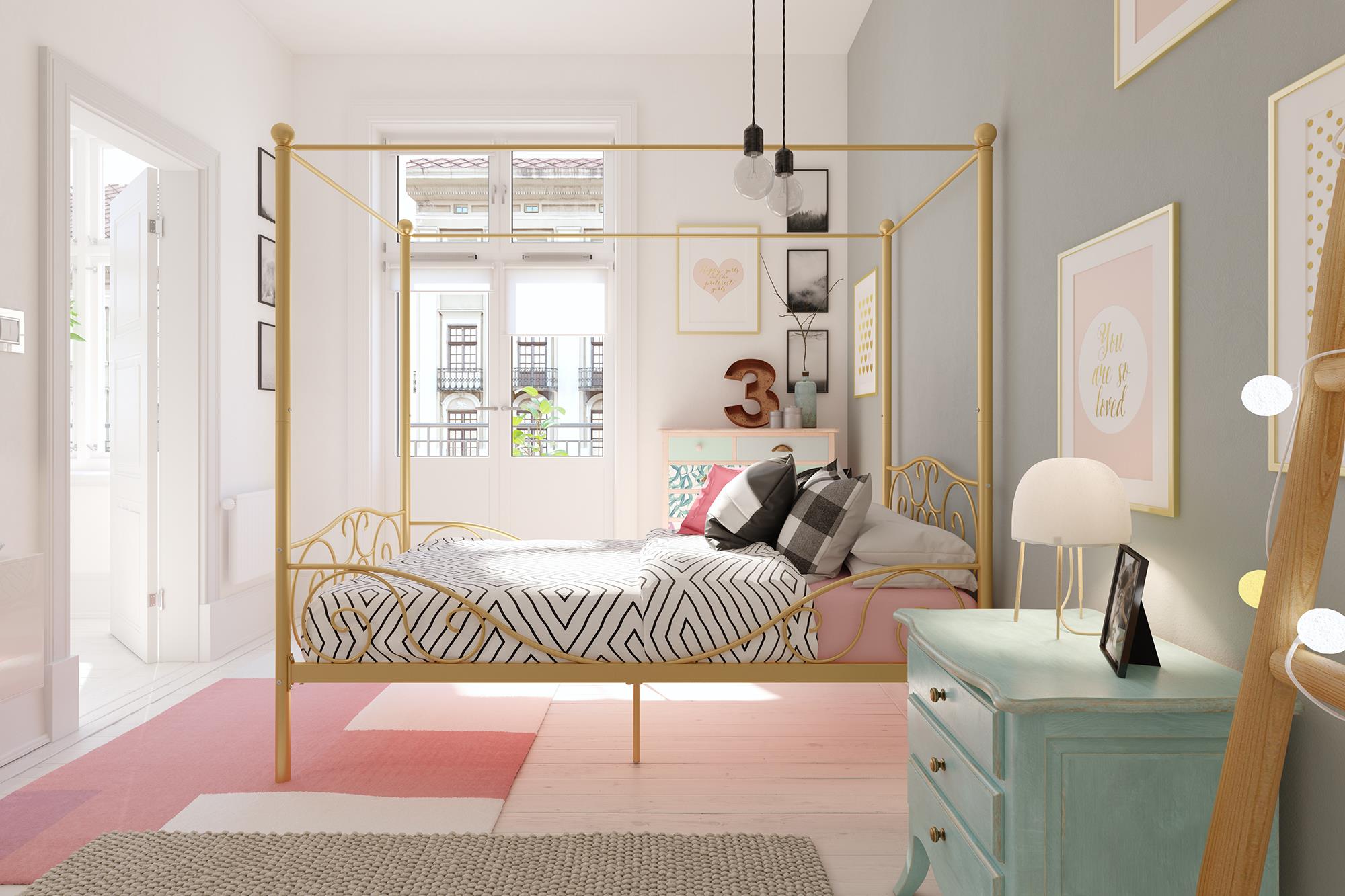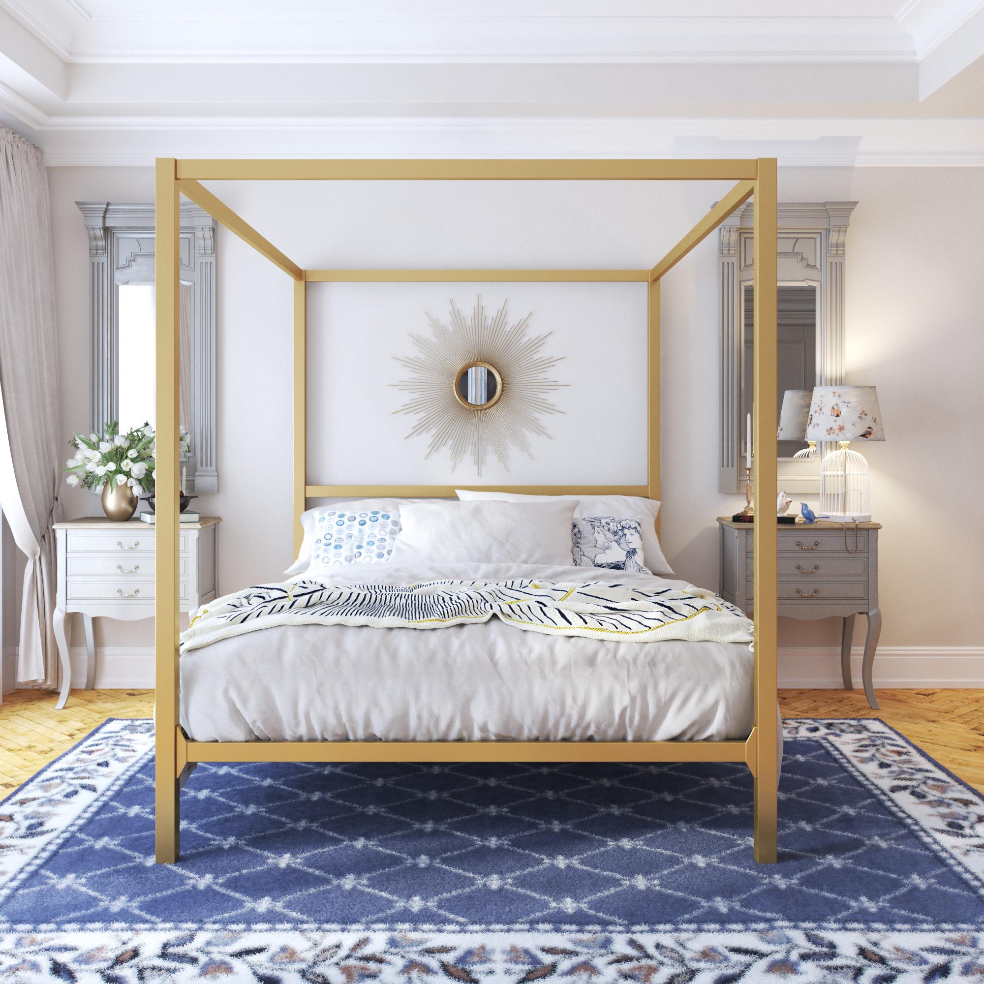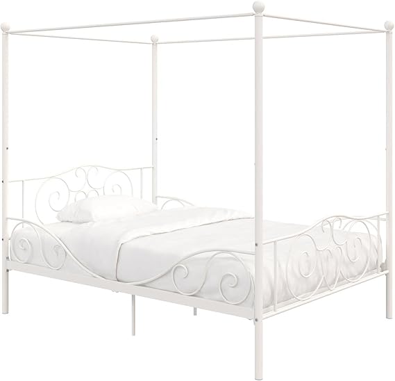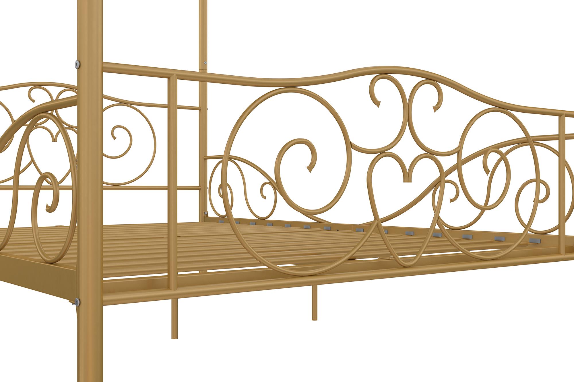 Costway full size metal canopy bed frame 4 poster steel slats w/safety guardrails gold. The dhp emerson metal canopy bed is the perfect centerpiece to bring personality and character to your bedroom. Knight home clickdecor coddle corliving cosmoliving by cosmopolitan crosley delta children designlovefest dhp dorel living dream on me dual comfort eco dream eluxury. Make bedtime more enticing with the dhp canopy metal bed. Sturdy metal frame with a heart scroll design and round finial posts.