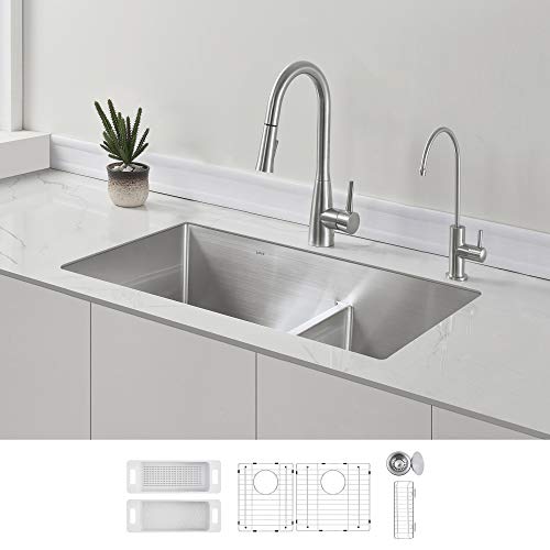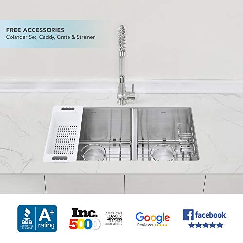 The undermount sink doesn't have a lip that traditional sinks have. 30 single bowl undermount combo stainless steel kitchen sink small radius. Enbol esd3319ll, 33 inch undermount 60/40 double bowl 16 gauge stainless steel kitchen sink with grid and strainer, 10 inch extra deep, round corner for more easy clean. For any special requests, i.e. Giantex best stainless steel hand wash.